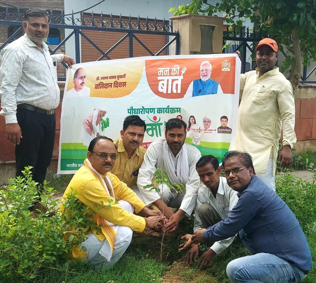 फिरोजाबाद। भारतीय जनता पार्टी उत्तर मंडल द्वारा भारतीय जनसंघ के संस्थापक डॉ श्यामा प्रसाद मुखर्जी के बलिदान दिवस के अवसर पर टापाकलां स्थितअंबेडकर पार्क एवं पानी की टंकी परिसर में वृक्षारोपण किया गया।इस मौके पर वरिष्ठ भाजपा नेता एवं प्रधानाचार्य भगवानदास शंखवार ने डॉ श्यामा प्रसाद मुखर्जी के चित्र पर माल्यार्पण किया और उनके व्यक्तित्व और कृतित्व पर प्रकाश डालते हुए कहा कि एक विधान,एक निशान और एक प्रधान का नारा देते हुए मुखर्जी जी ने कश्मीर से धारा 370 के खात्मे हेतु कार्य किया और इसी के खातिर बलिदान दे दिया।